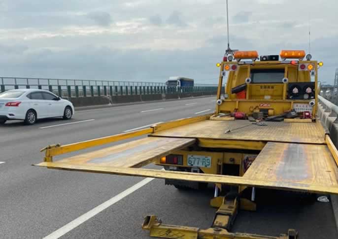 依高速公路局規定,高速公路、高架橋及快速道路禁止現場急修,需先進行拖吊處理,再安排後續維修服務。